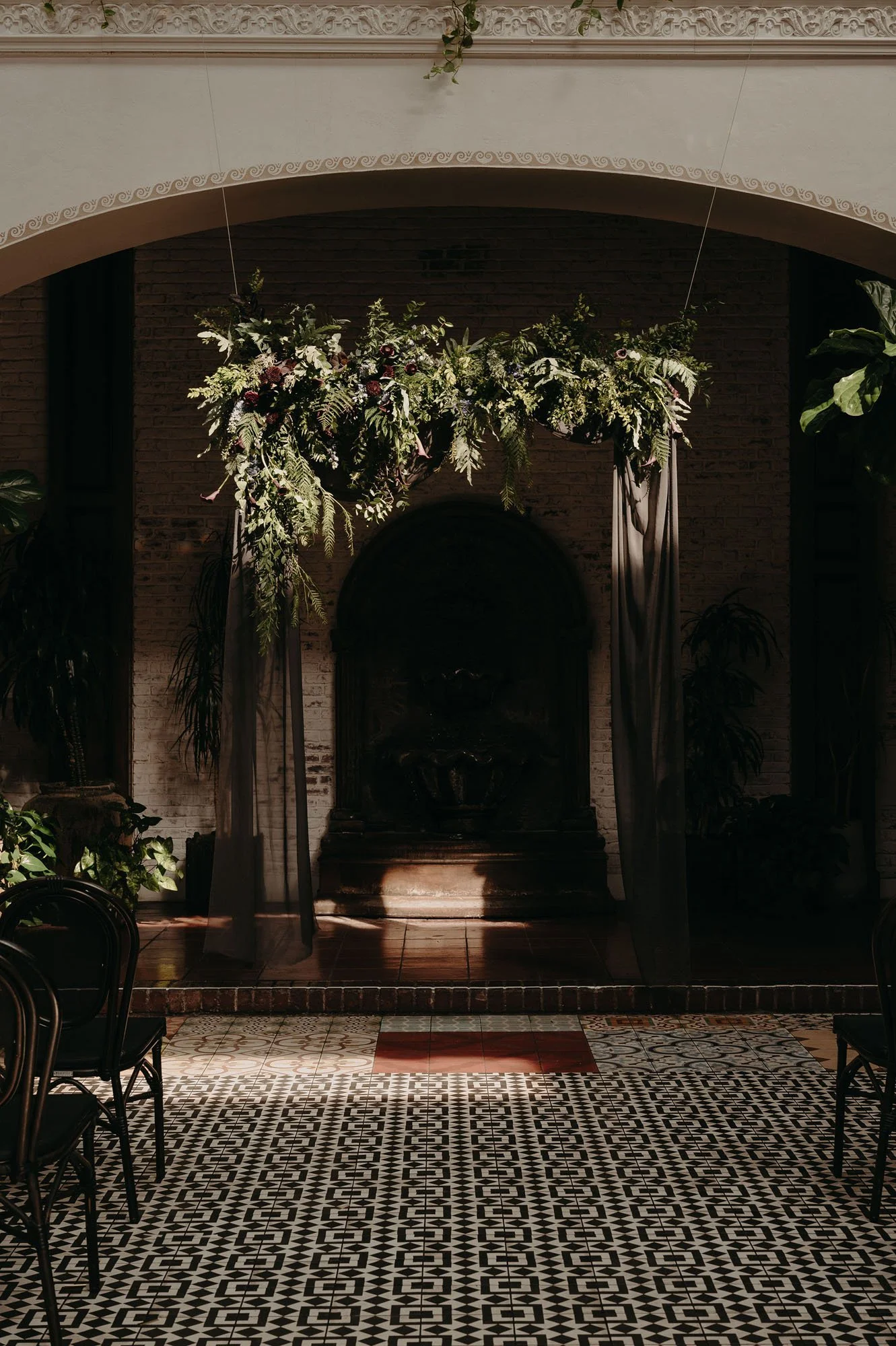 There is something so beautifully romantic about a wedding ceremony on Halloween. Maybe it’s the opportunity to do something dramatic and gothic inspired, or it’s that a marriage commitment when the veil is thin feels further imbued with the spirit of eternity. Or perhaps it is simply that the sun sets early in October and a candlelight wedding ceremony can carry us away to another world. There are so many ways to play with the Halloween theme when it comes to wedding ceremony altars. A landscape of flickering flames, botanically immersive arrangements, and your closest loved ones gathered near creates an atmosphere that feels timeless, intimate, and quietly dramatic. When thoughtfully designed, a gothic-inspired wedding altar can feel elevated and theatrical. Below are a few of our favorite moody ceremony altar directions that create an environment where “‘til death do us part” reads as romance rather than costume.